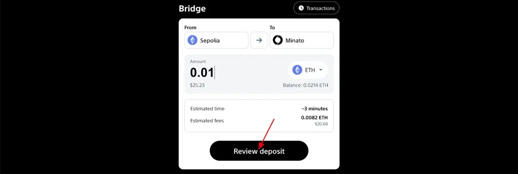 2. Acesse a bridge e transfira tokens ETH da rede Sepolia para a rede Soneium Minato.