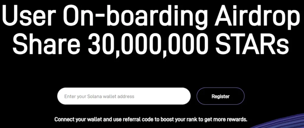 Antes de iniciar a atividade principal, o Starpower lançou uma mini-campanha onde você pode especificar e conectar sua carteira Solana e convidar amigos. Um total de 30 milhões de tokens STAR está alocado para este evento.