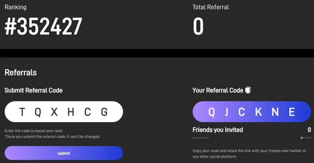 3. Encontre seu link de referência, convide amigos e acompanhe seu progresso no painel: