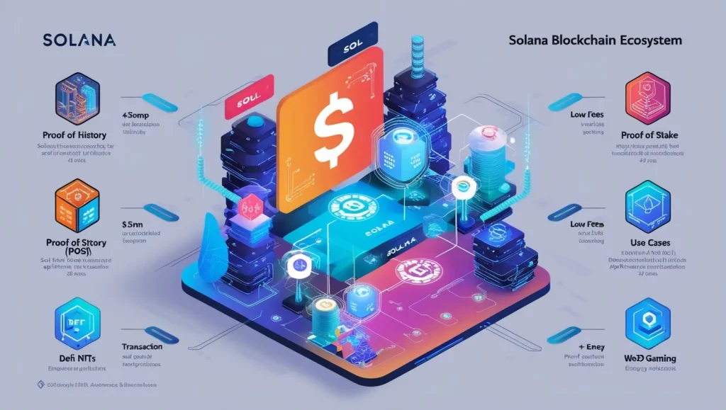 A grande inovação da Solana está em seu mecanismo de consenso chamado Proof of History (PoH), que, combinado com Proof of Stake (PoS), permite processar milhares de transações por segundo (TPS). Isso a torna uma das blockchains mais rápidas do mercado, ideal para projetos DeFi, NFTs e Web3.